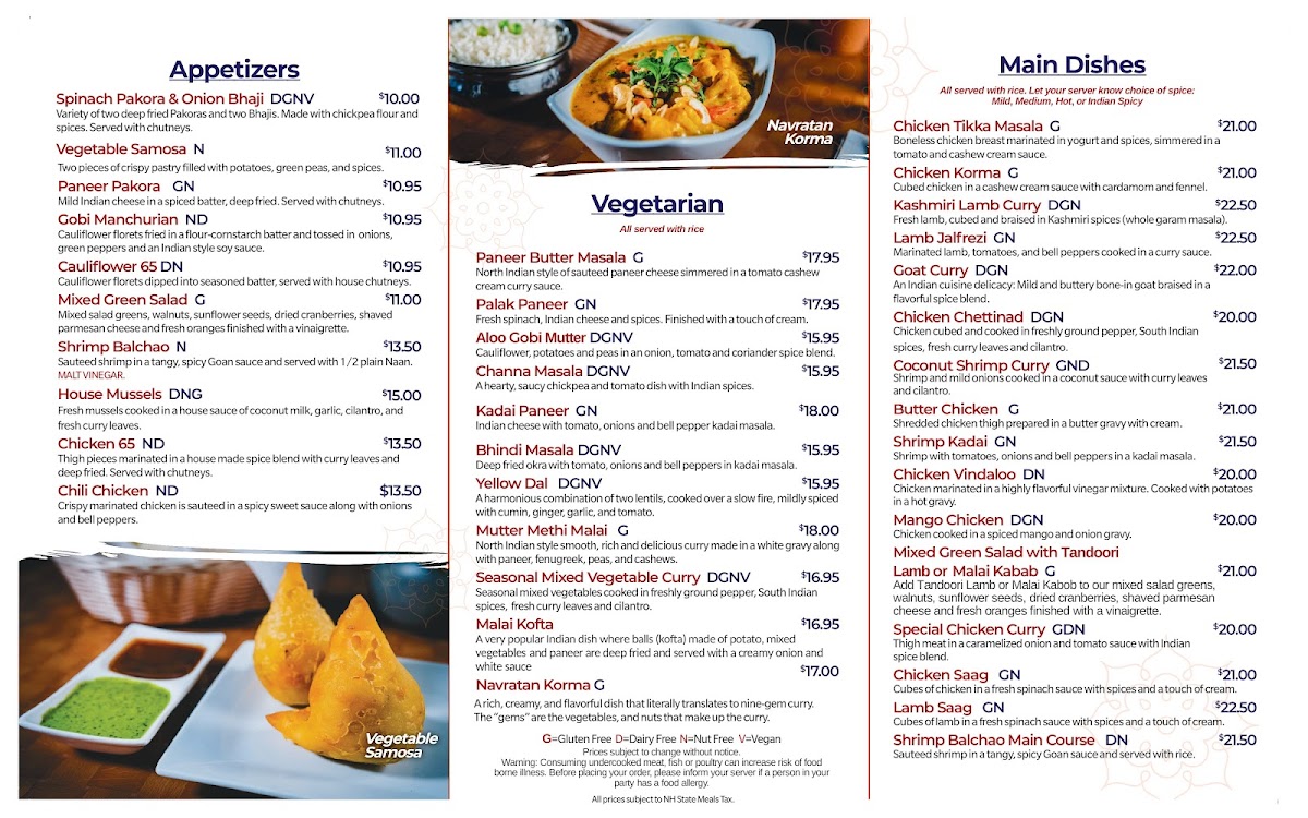 Introducing the Menu at Destination India Restaurant & Bar Hampton NH